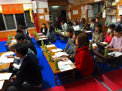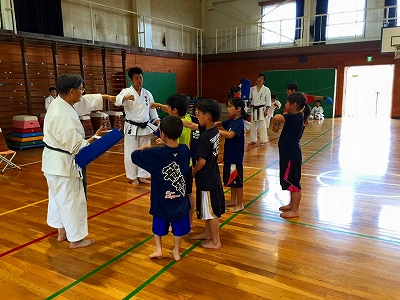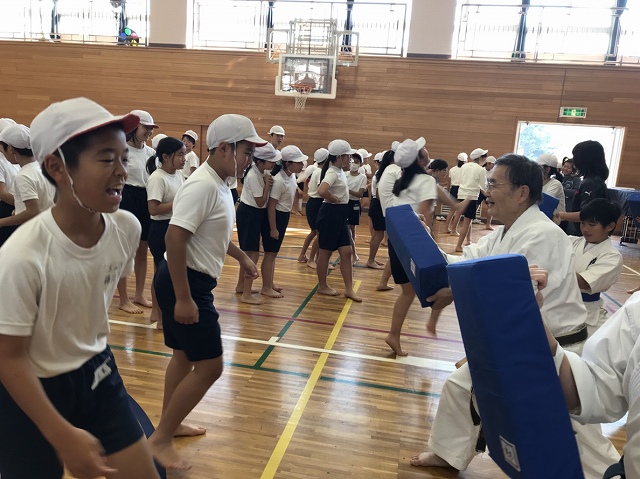 第一小学校の昭空会の指導者が熱心に参加者に楽しく教えて理解してもらっていました。
