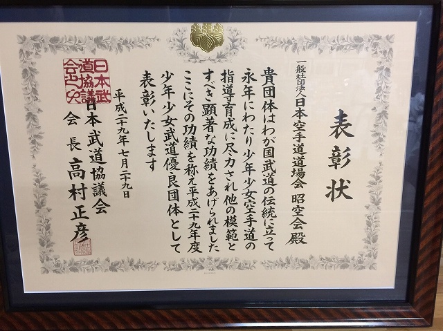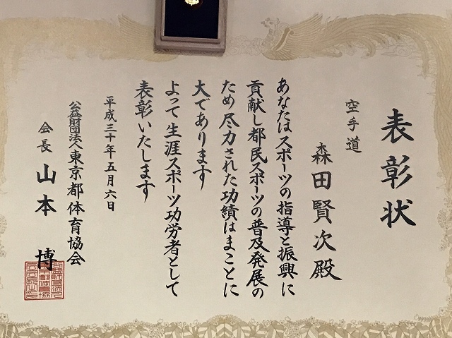 森田師範 東京都空連から、スポーツ功労賞を頂きました